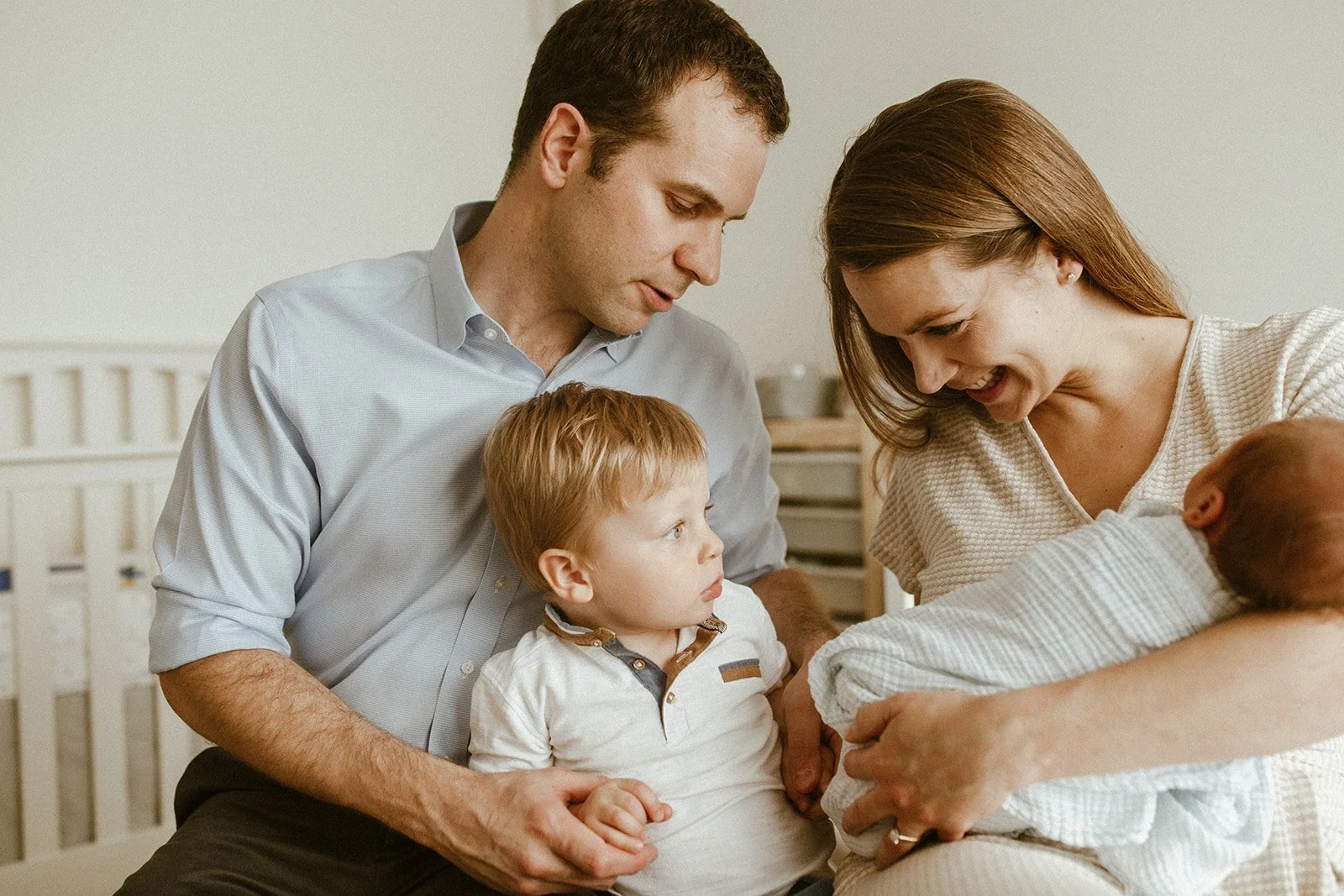 I’m always so flattered when I get to photograph the same family on multiple different occasions. It’s basically them saying they trust me, feel comfortable and value my work. What a wonderful mindset to have going into a photoshoot. This was my third time photographing the Karas family. My first session with them was back in the fall of 2020. Beau wasn’t yet three and had quite a lot of energy for me to try to keep up with. I absolutely loved the photos from that session, so I was so happy to hear from them again in the spring of 2021. Allison told me she was pregnant with another baby boy and wanted some maternity photos as well as a few photos of her growing family (maybe I’ll get around to blogging that session one day). And then our most recent session together – little Max was born and I came to their home to document all the newborn love and excitement. Beau seemed to remember me this time around and warmed up quickly. We ran around and played and took photos in between. I’m always in awe witnessing the angelic essence newborns have. I think these photographs really capture the purity and wholesomeness that was felt in those moments. The delicateness of a soul in a brand new body. It’s equally surreal and beautiful.